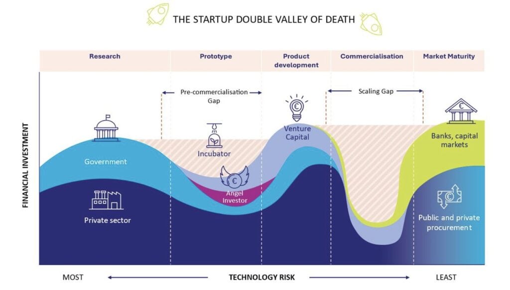 The EU faces a persistent “scale-up valley of death” (Fig.2[43]) between prototype and commercial manufacturing. CFG’s industry engagement exercise identified limited pilot capacity, regulatory misalignment, and uneven SME access as principal barriers to integrated biotechnology ecosystems[44]. Some SMEs face 18-24 month delays for pilot-GMP access, narrowing patent windows and undermining competitiveness.